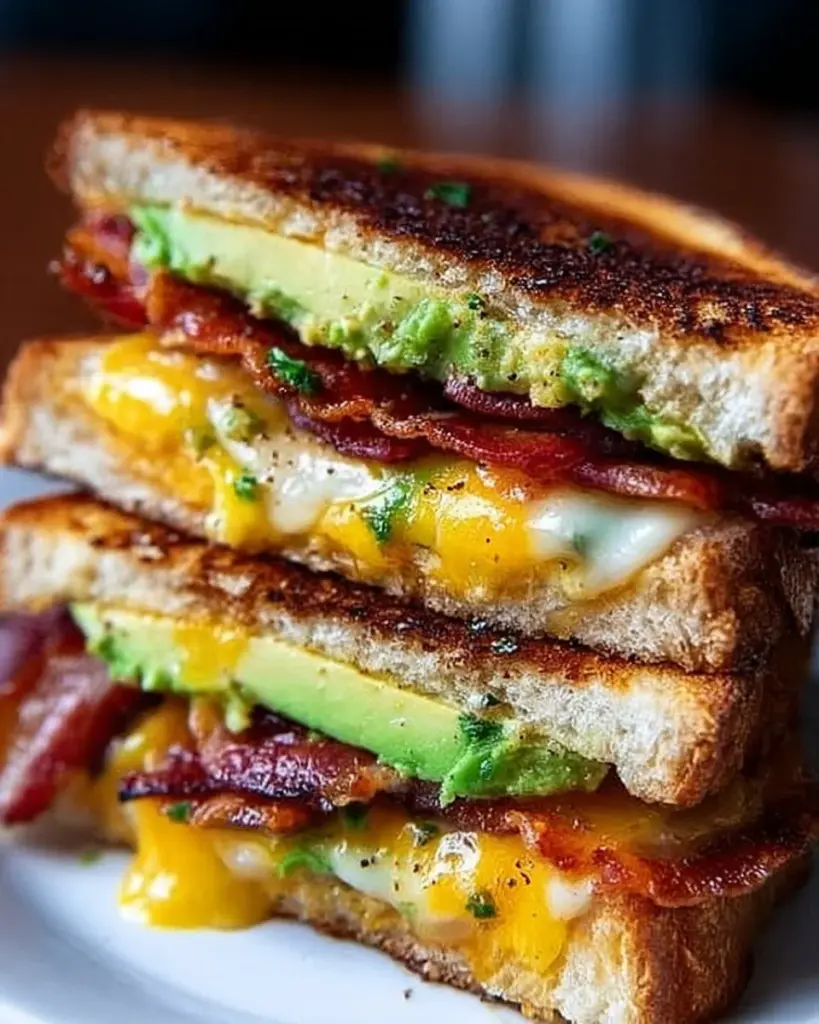 Gegrilltes Avocado-Sandwich mit Speck und Käse
