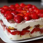 Erdbeer Tiramisu ist nicht nur ein Dessert, sondern eine zauberhafte Art, den Sommer in einem Bissen einzufangen. Sehen Sie sich diesen Schichttraum an und lassen Sie sich von seinem fruchtigen Geplätscher und der samtigen Süße überwältigen. Es ruft förmlich nach einem Fest, das die Sinne erfreut und Ihr Herz höher schlagen lässt. Versuchen Sie es – Sie werden es nicht bereuen!