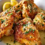 Knuspriges Hähnchen mit einer leckeren Parmesan-Kruste und einem Spritzer Zitrone.