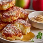 Knusprige Milchreispuffer mit einer zarten Apfelfüllung, perfekt für Frühstück oder Dessert.