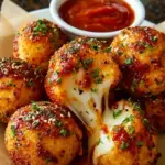 Köstliche Pizza-Bällchen gefüllt mit Käse und Salami, perfekt als Snack für gesellige Abende.