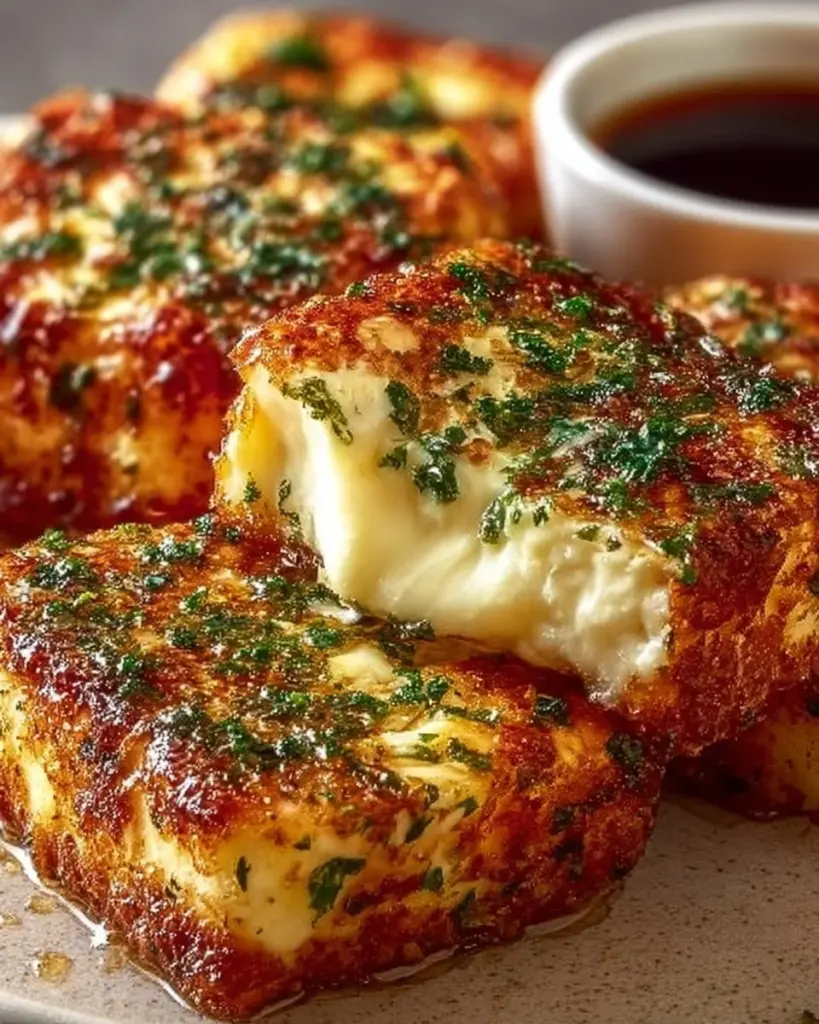 Käse-Lauch-Bällchen auf einem Teller, serviert als Snack oder Vorspeise.