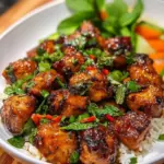 Ein köstliches vietnamesisches Rezept mit würzigen und süßen Aromen, das auf einem Bett aus Jasminreis serviert wird.